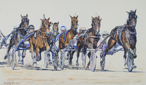 2021Thirty Nine and Fine leek mij een toepasselijke titel voor dit schilderij van de 39-jarige oude draver Zeres Boszorg (1982). Het paard kon geweldig hard lopen, maar bleek te onstuimig voor de baan. Ik was diep onder de indruk van deze, naar mensenjaren gerekend, honderdjarige. In mei 2022 overleed Zeres, veertig jaar oud.